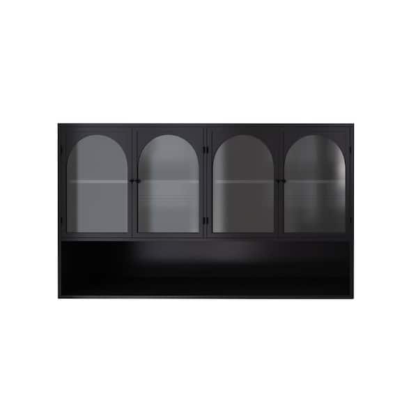 Modern 47 in. W x 9 in. D x 27 in. H Glass Wall-Mounted for Kitchen, Bathroom Storage Wall Cabinet in Black