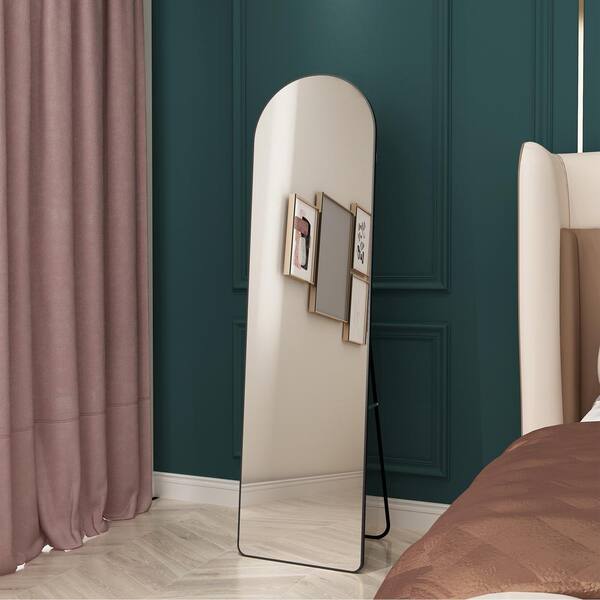 Modern 59.8 in. W x 16.5 in. H Full Length Arched Wall Mirror With black Aluminum Frame