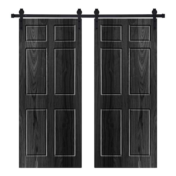 Modern 6-Panel Designed 84 in. W. x 80 in. Wood Panel Ebony Painted Double Sliding Barn Door with Hardware Kit