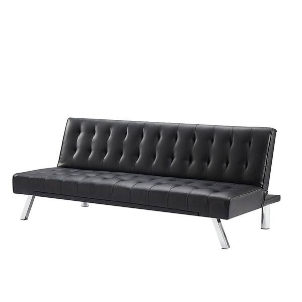 Modern 70.08 in. W Armless Faux Leather Straight Convertible Sofa in Black