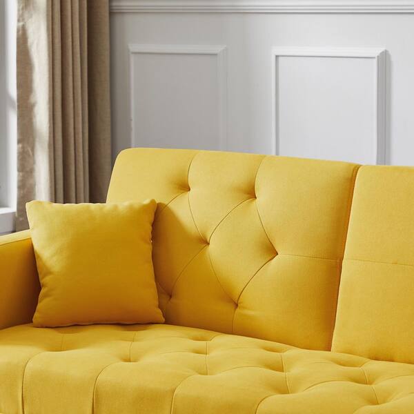 Modern 75.59 in. W Square Arm Linen Straight Convertible Sofa in Yellow