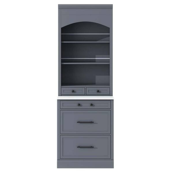 Modern 83.7 in. Gray Kitchen Pantry Cabinet Home Display Cupboard with Faux Marble Top, 5 Drawers and Adjustable Shelf
