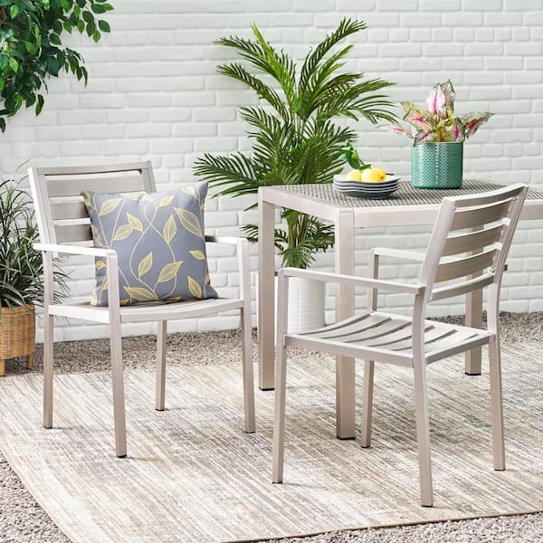 Modern Aluminum Outdoor Dining Chairs in Silver, Patio Armchairs Dining Set Chairs for Garden Backyard (Set of 2)