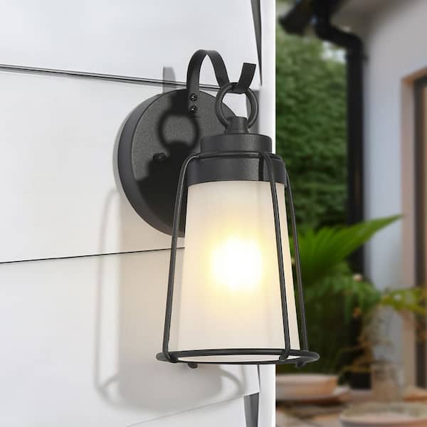 Modern Black Outdoor Wall Light, 1-Light Farmhouse Minimalist Outdoor Wall Lantern Sconce with Frosted Glass Shade