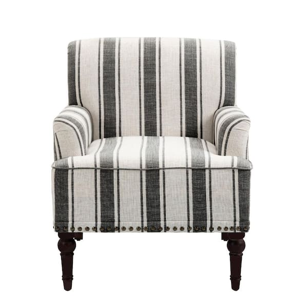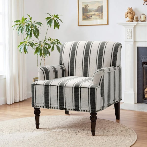 Modern Black Striped Linen Fabric Upholstered Accent Armchair With Wooden Legs(Set of 1)