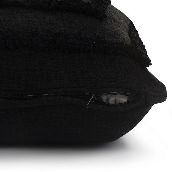 Modern Black Tufted Solid Soft Poly-Fill 24 in. x 16 in. Lumbar Indoor Throw Pillow