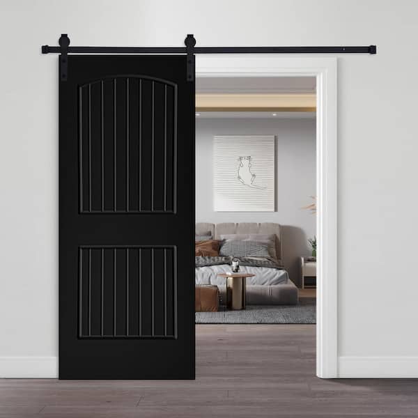 Modern Cheyenne Designed 80 in. x 28 in. 2-Panel MDF Panel Black Painted Sliding Barn Door with Hardware Kit