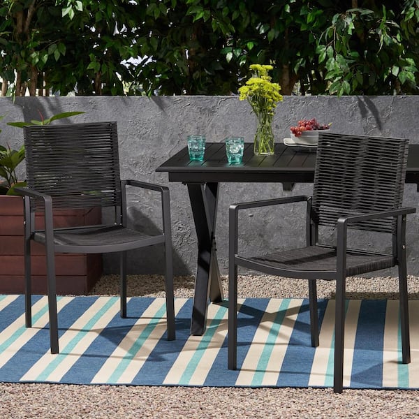 Modern Design Aluminum Frame Outdoor Dining Chair with Handcrafted Rope Weave Seat And Rust-Resistant in Black Set of 2