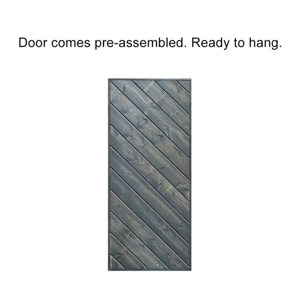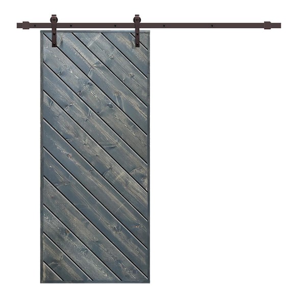 Modern European 36 in. x 84 in. Pre Assembled Nickel Gray Stained Solid Wood Sliding Barn Door with Hardware Kit