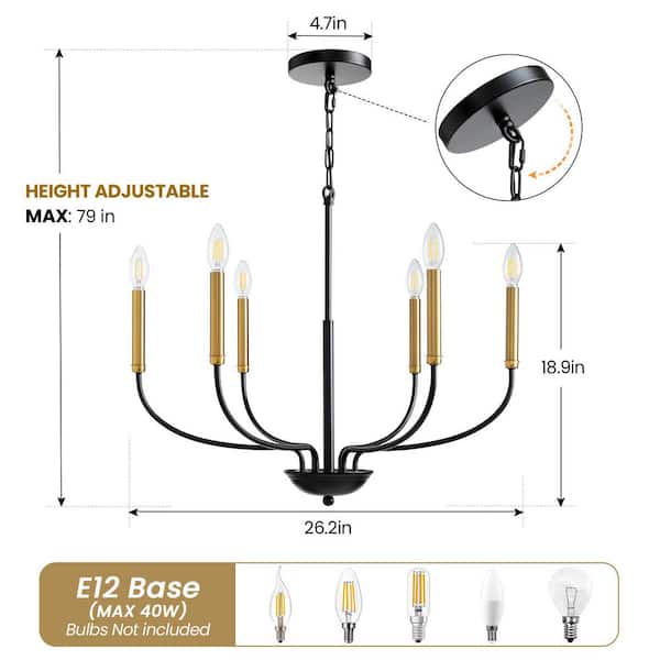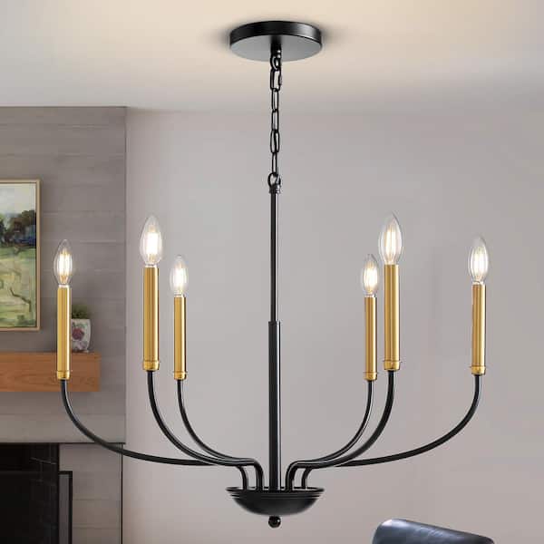 Modern Farmhouse 6-Light Traditional Chandelier Black and Gold Candle Style Chandelier for Living Room, Kitchen Island