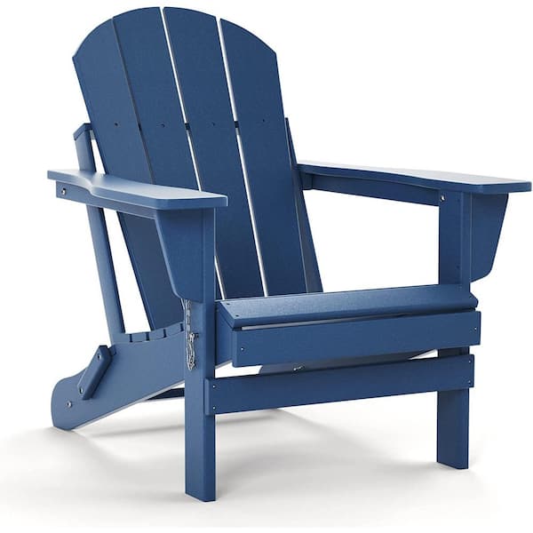 Modern Folding Navy Blue HDPE Plastic Patio Adirondack Chair Outdoor (Pack of 1)