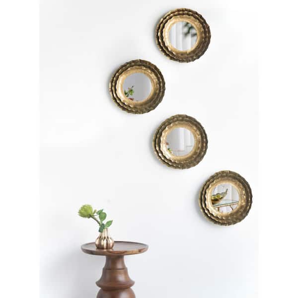 Modern Gold 16.1 in. W x 16.3 in. H Round Iron Framed Mirror for Wall
