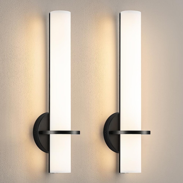 Modern LED Black Wall Sconce with Frosted Cylindrical Acrylic Shade Dimmable Sconces Wall Lighting (Set of 2)