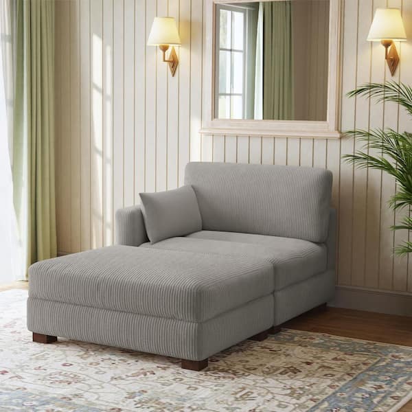 Modern Left Arm Facing Light Gray Corduroy Polyester Upholstered Sectional Chaise Lounge with Ottoman