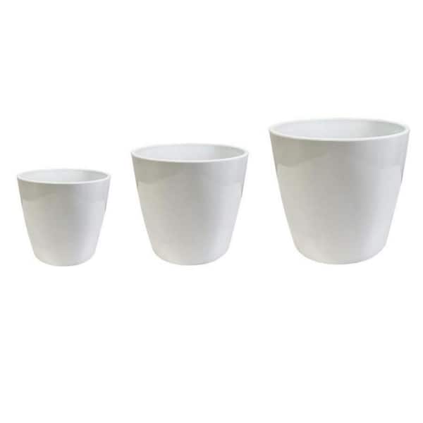 Modern Minimalist 4/5/6 in. White Glossy Round Poly Stone Planter Flowerpot for Garden Plants and Flowers (3-Pack)