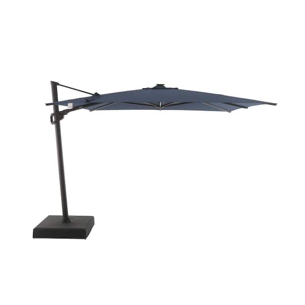 Modern Muse 10 ft. Aluminum Cantilever Solar Power Light Tilt Crank Lift Patio Umbrella in Sunbrella Spectrum Indigo
