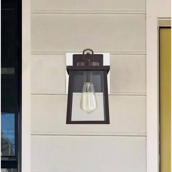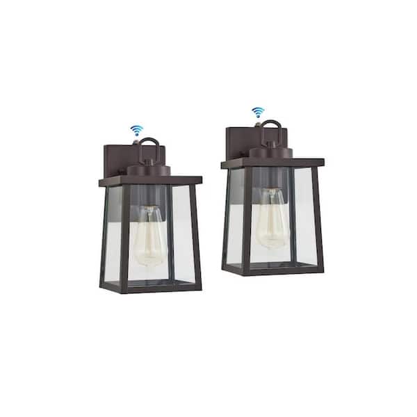 Modern Oil Rubbed Bronze E26 Motion Sensor Dusk to Dawn Wall Lantern Sconce with Clear Glass Shade (Set of 2)