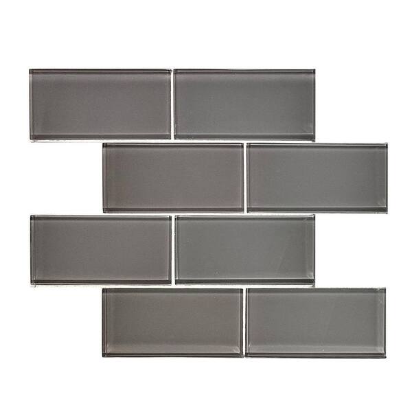 Modern Pebble Gray 3 in. x 6 in. x 8 mm Glossy Glass Subway Wall Tile (8.75 sq. ft./Case)