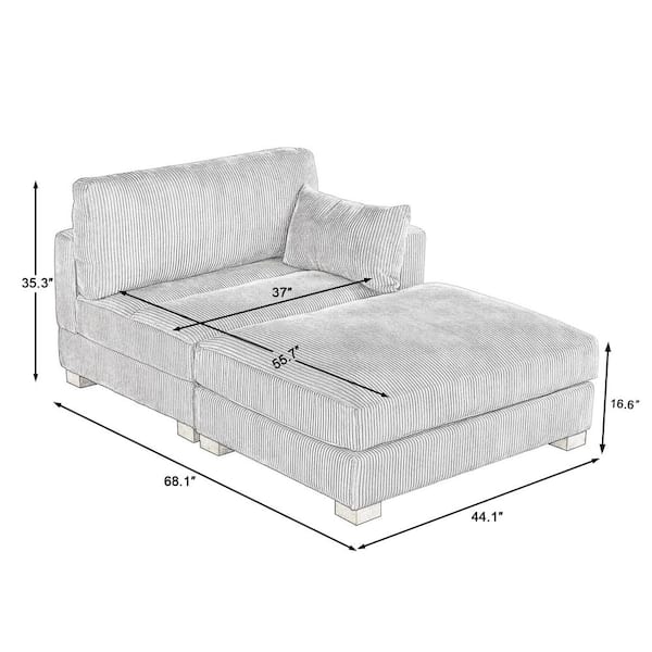 Modern Right Arm Facing Camel Corduroy Polyester Upholstered Sectional Chaise Lounge with Ottoman