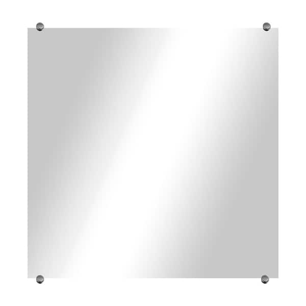 Modern Rustic (12in. W x 12in. H) Frameless Square Wall Mirror with Brass Round Clips