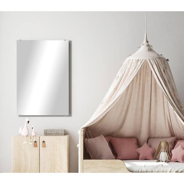 Modern Rustic (26.5in. W x 32.5in. H) Frameless Rectangular Wall Mirror with Clear Clips