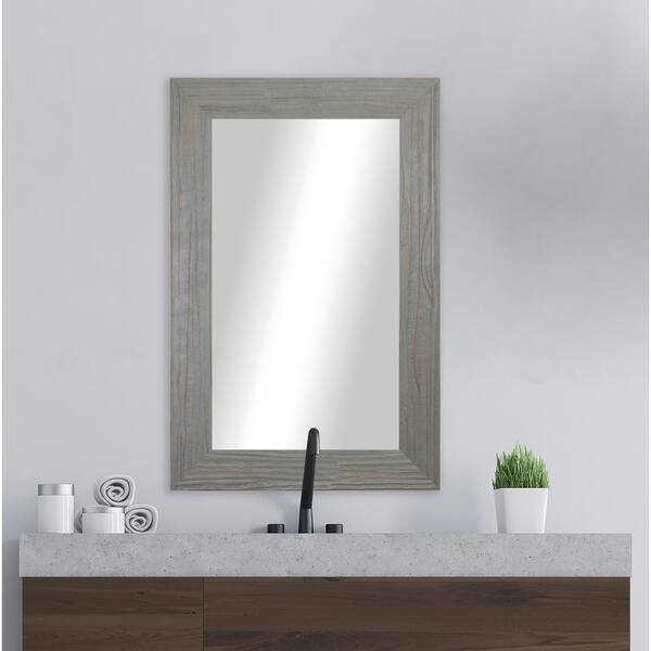 Modern Rustic (27.25 in. W x 32.25 in. H) Rectangular Wooden Weathered Grey Mirror
