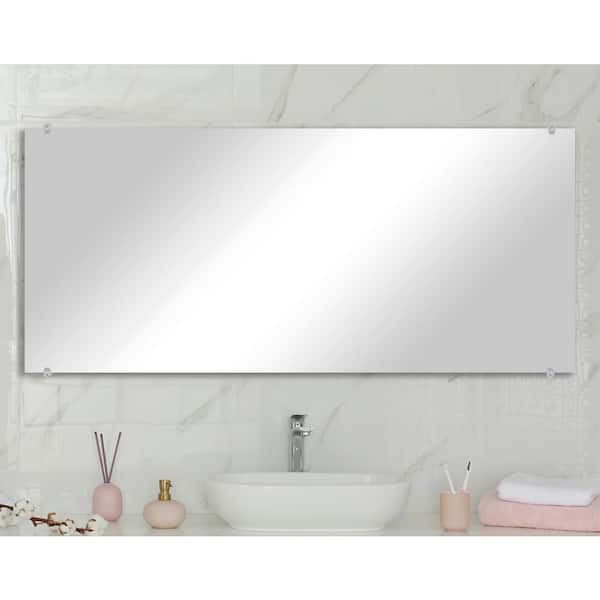 Modern Rustic (40in. W x 29.5in. H) Frameless Rectangular Wall Mirror with Clear Clips