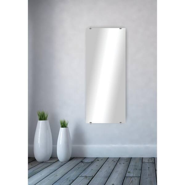 Modern Rustic (64in. W x 26in. H) Frameless Rectangular Wall Mirror with Chrome Oval Clips