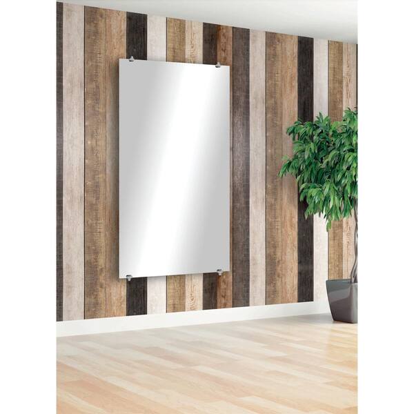 Modern Rustic (66.5in. W x 33.5in. H) Frameless Rectangular Wall Mirror with Chrome Oval Clips