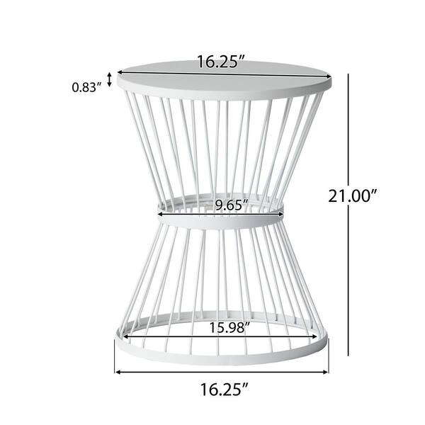 Modern Sleek Round Metal Outdoor Patio Deck Side Table, Hourglass Structure and An Open Cage Design, Matte White