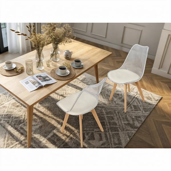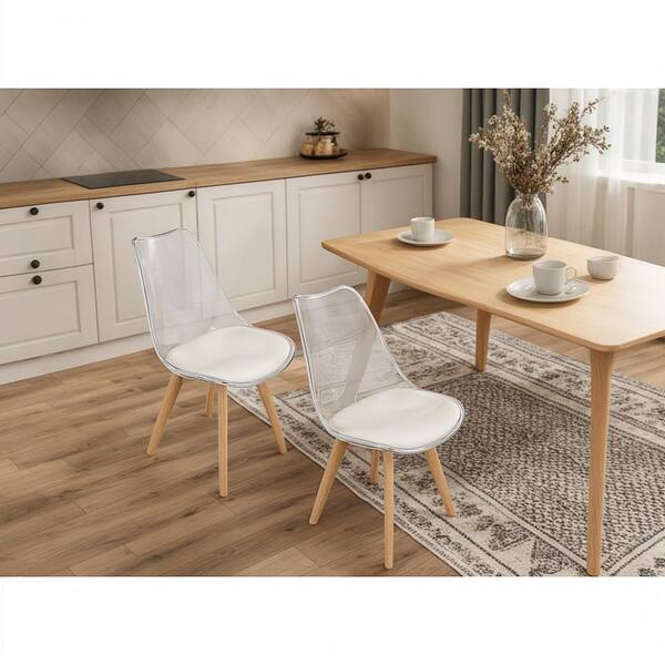 Modern Soft Padded Dining Chairs with Wooden Legs, (Set of 2) Clear