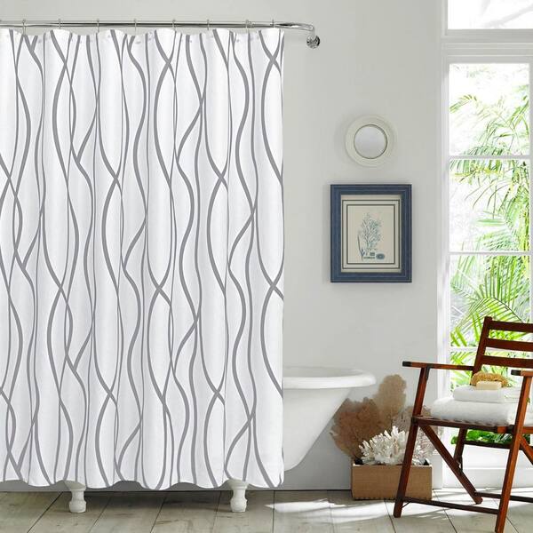 Modern Striped Design 72 in. W x 72 in. L Fabric Shower Curtain Linen in Silver Grey