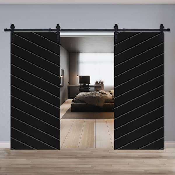 Modern TWILL Designed 60 in. x 84 in. MDF Panel Black Painted Double Sliding Barn Door with Hardware Kit