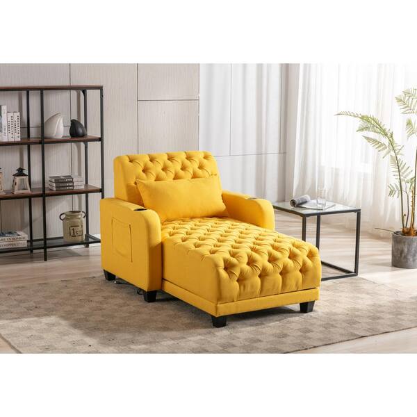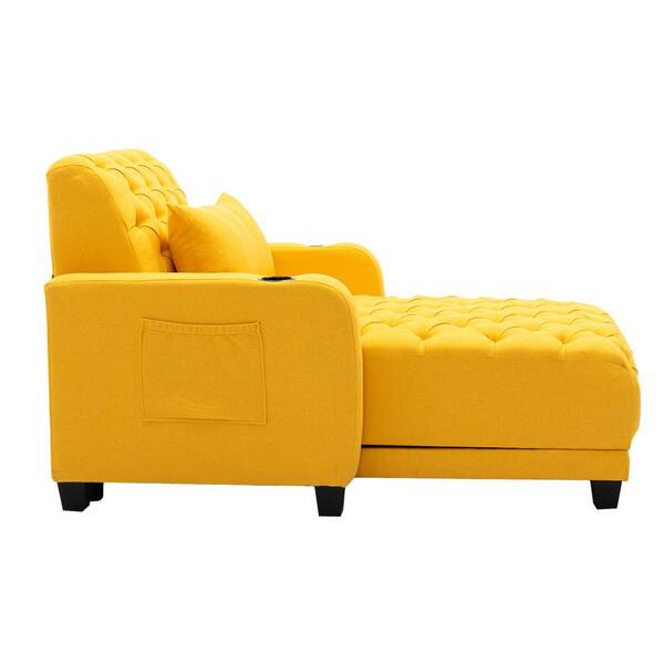 Modern Tufted Yellow Linen Electric Adjustable Sofa Chaise Lounge with Wireless Charging a Pillow and Pocket