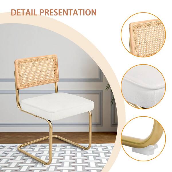 Modern Upholstered Velvet Seat Armless Chairs with Metal Legs, Natural Mesh Rattan Backrest, (Set of 4), Velvet White