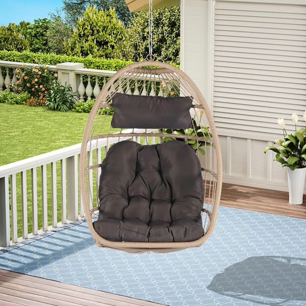 Modern Wicker Metal Porch Swing Outdoor Indoor Garden Rattan Egg Swing Chair Hanging Chair with Dark Gray Cushions