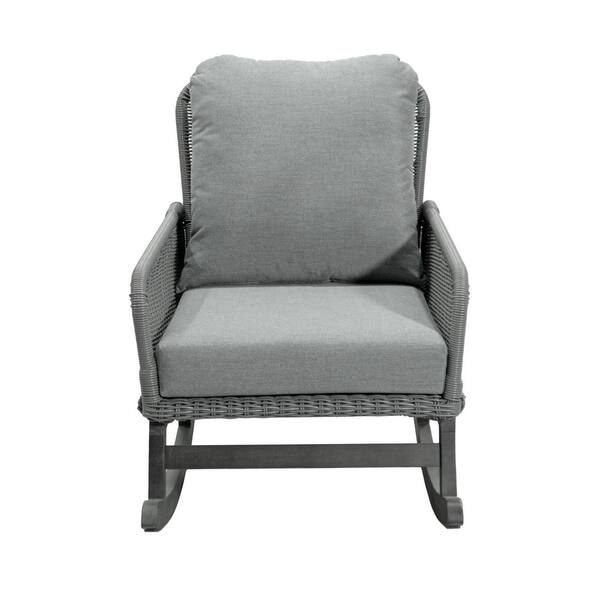 Modern Wood Frame Outdoor Rocking Chair with 3.94 in. Gray Soft Polyester Cushion