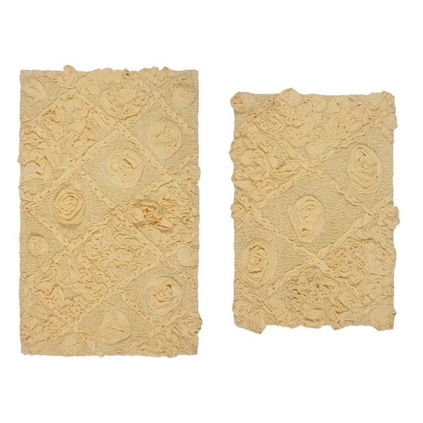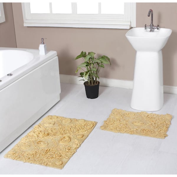 Modesto Bath Rug 100% Cotton Bath Rug Set, Machine Wash, 2 Pcs Set(S+M), Yellow