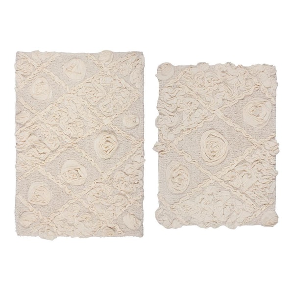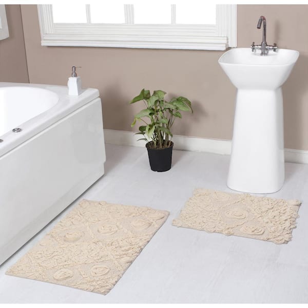 Modesto Bath Rug 100% Cotton Bath Rug Set, Machine Wash, 2-Piece Set(S+M), Ivory