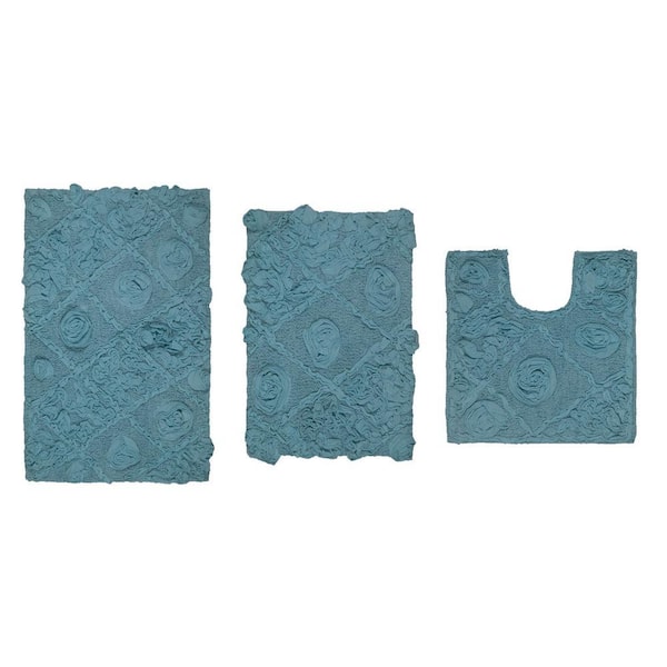Modesto Bath Rug 100% Cotton Bath Rugs Set, 3-Pcs Set with Contour, Blue