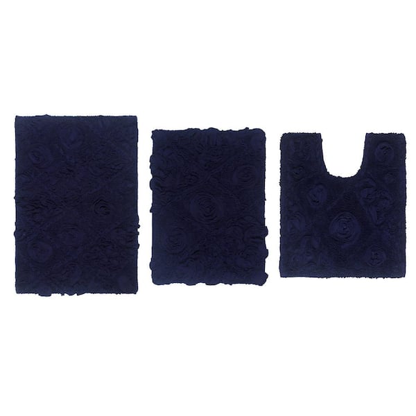 Modesto Bath Rug 100% Cotton Bath Rugs Set, 3-Pcs Set with Contour, Navy