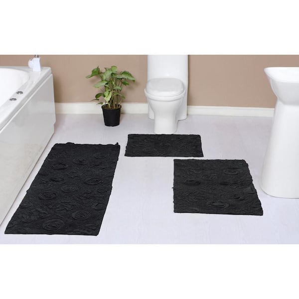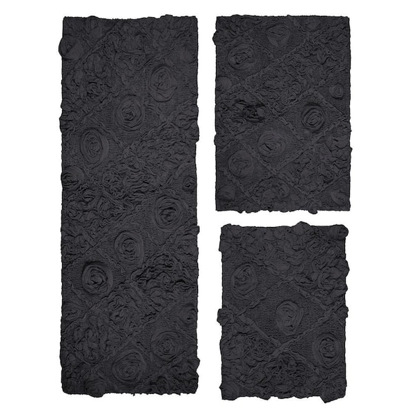 Modesto Bath Rug 100% Cotton Bath Rugs Set, 3-Pcs Set with Runner, Gray