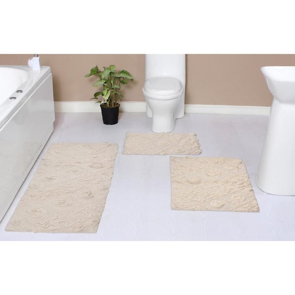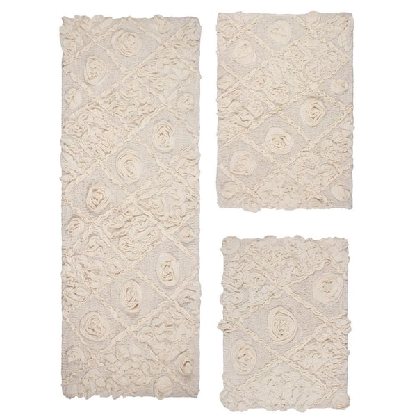Modesto Bath Rug 100% Cotton Bath Rugs Set, 3-Pcs Set with Runner, Ivory