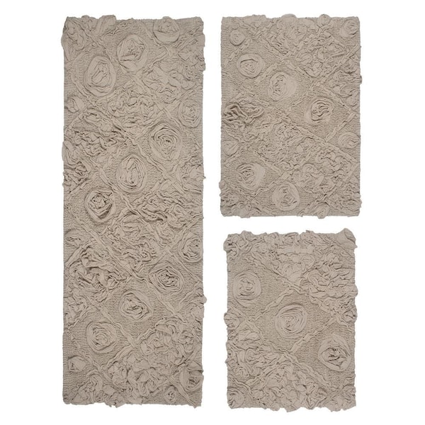 Modesto Bath Rug 100% Cotton Bath Rugs Set, 3-Pcs Set with Runner, Linen