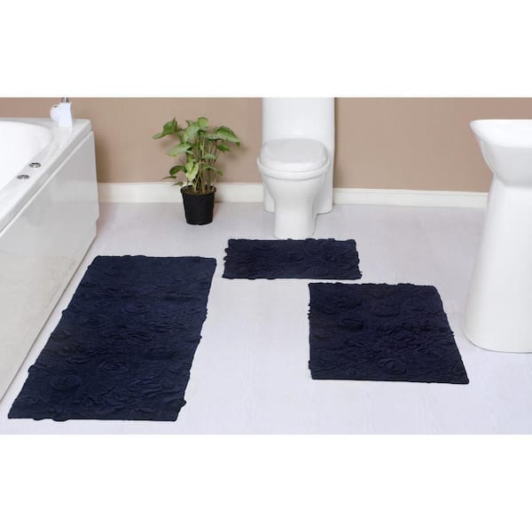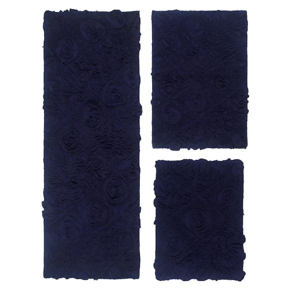 Modesto Bath Rug 100% Cotton Bath Rugs Set, 3-Pcs Set with Runner, Navy