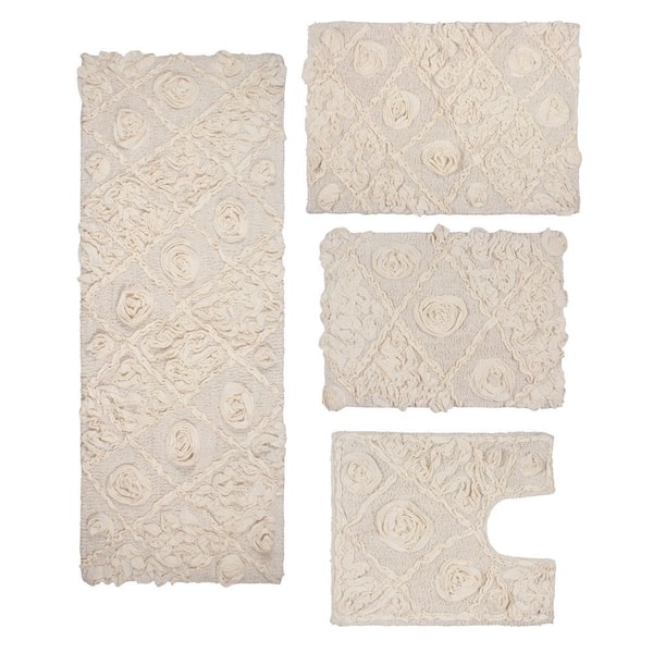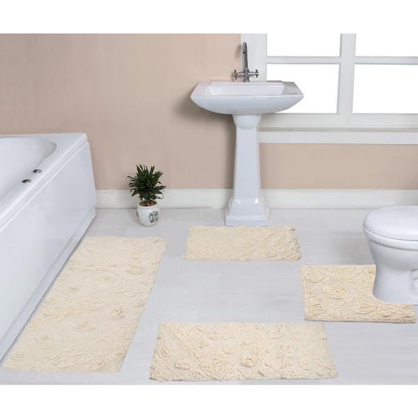 Modesto Bath Rug 100% Cotton Bath Rugs Set, 4-Pcs Set with Runner, Ivory