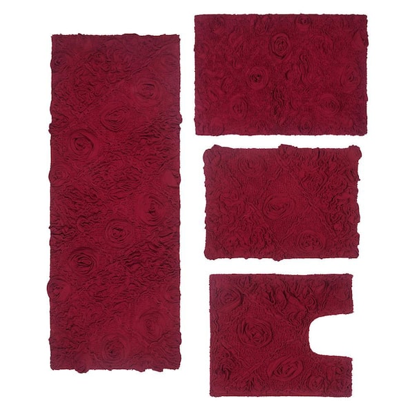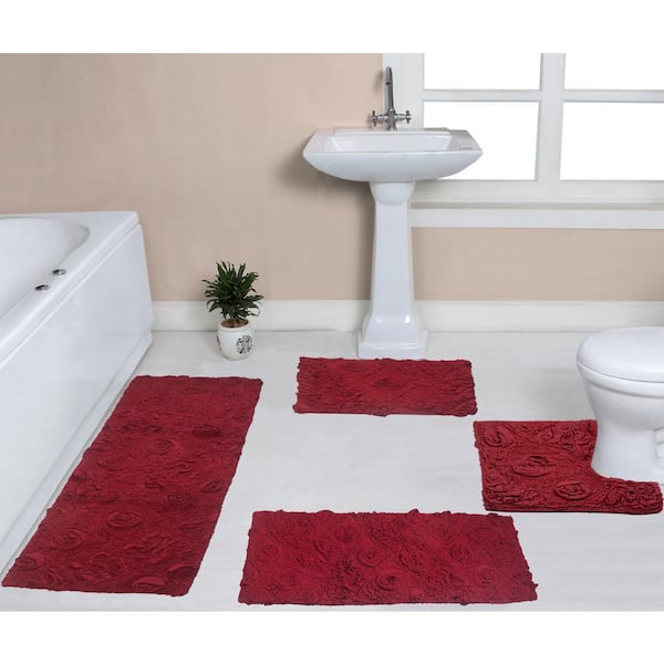 Modesto Bath Rug 100% Cotton Bath Rugs Set, 4-Pcs Set with Runner, Red