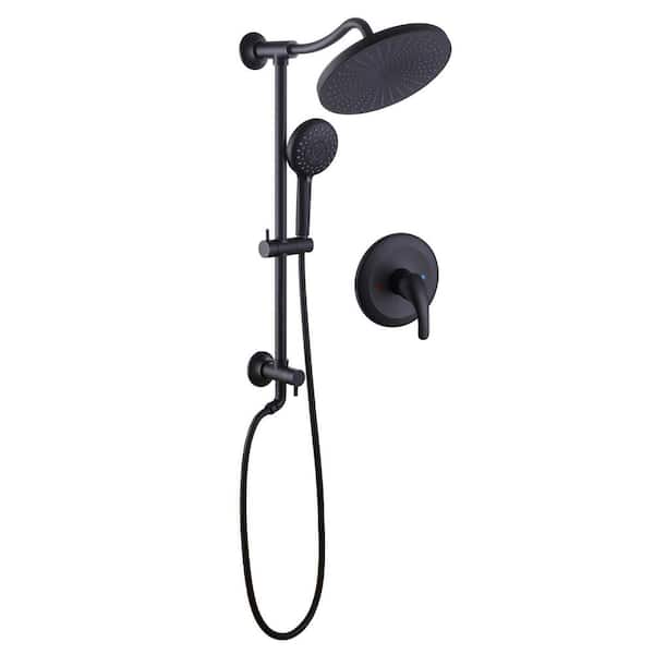 2 Functions Spray Dual Shower Head Wall Mount Fixed and Handheld Shower Head 2.39 GPM in Matte Black
