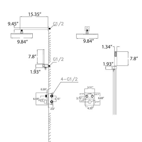 2-Handle 2-Spray Wall Mount Dual Shower Heads with Body Spray 10 in. Shower Head 1. 6GPM in Brushed Gold