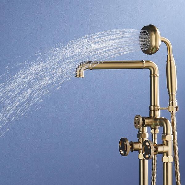 2-Handle Freestanding Tub Faucet with Hand Shower in Brushed Gold